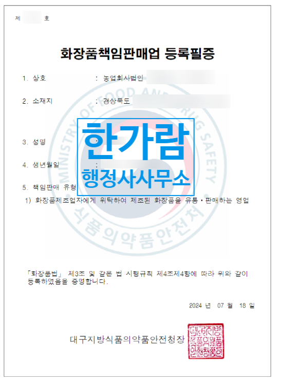 화장품 책임판매업 등록필증 신청 시 필요서류