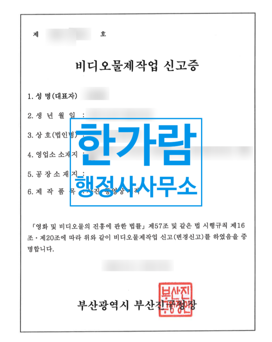 비디오물제작업신고 이후 절차