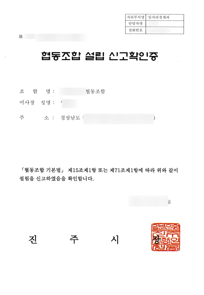 협동조합 등 단체 설립이 필요한 경우 언제든 연락주시기 바랍니다.