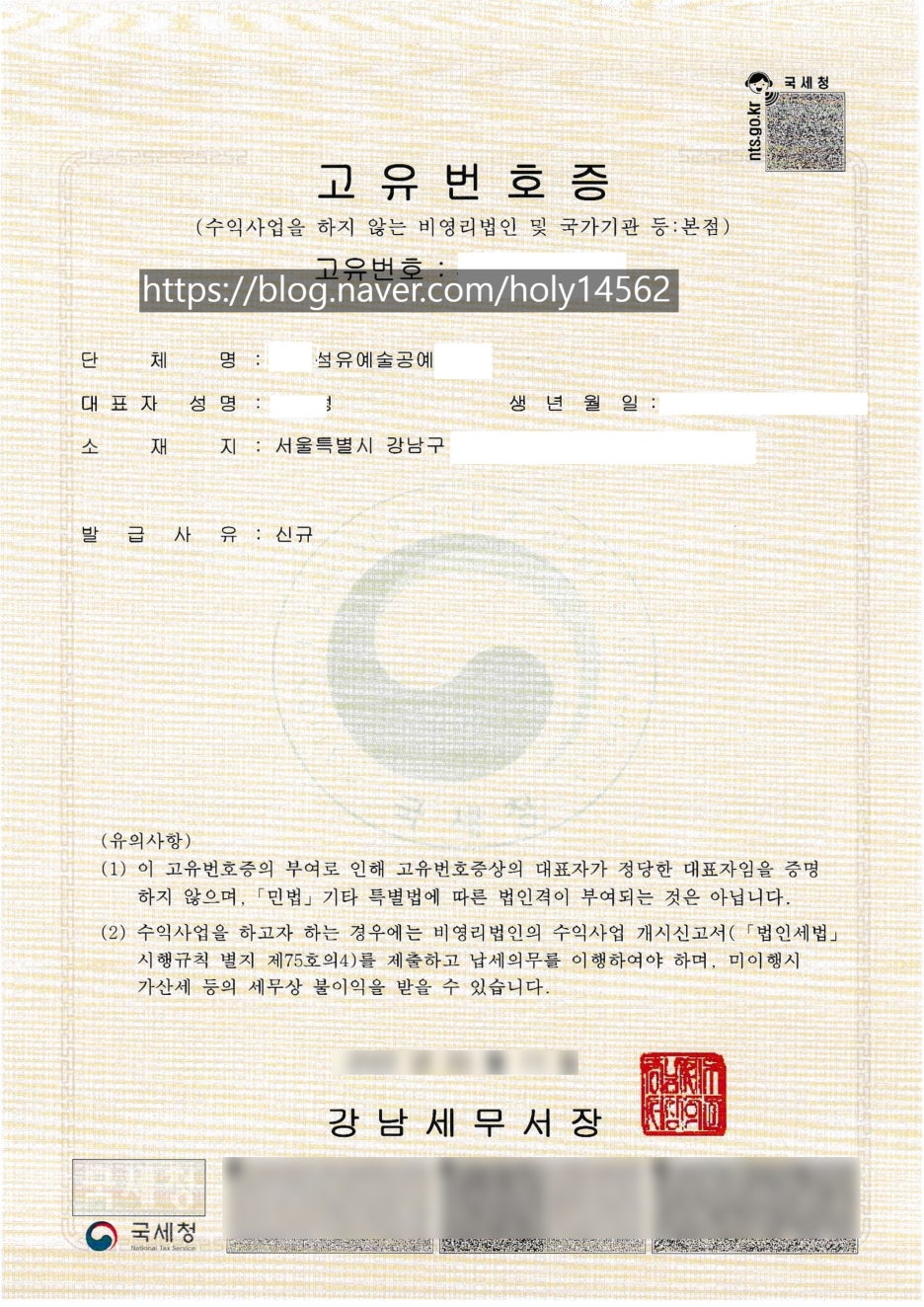 아래와 같은 고유번호증입니다.