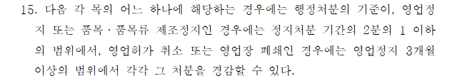 청소년 주류판매로 인한 행정처분 감경 기준은?
