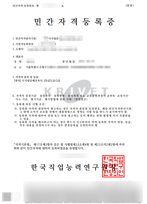 가입 및 민간자격증 등록을 위해 필요한 다음과 같습니다.