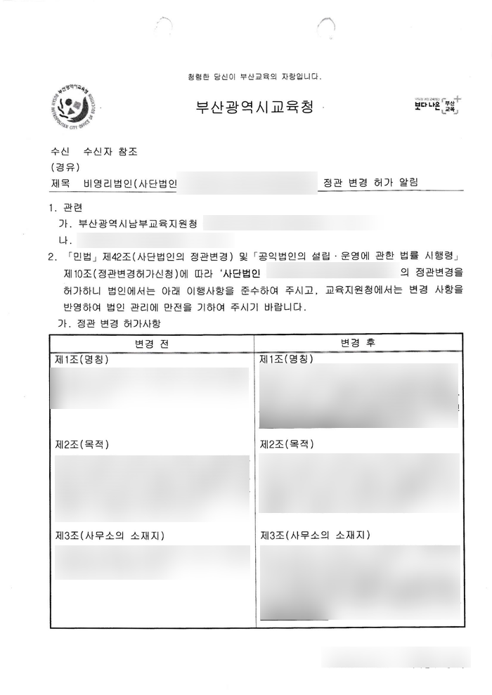 오늘은 사단법인, 재단법인 등 비영리법인의 정관 변경 허가 절차에 대한 포스팅입니다.