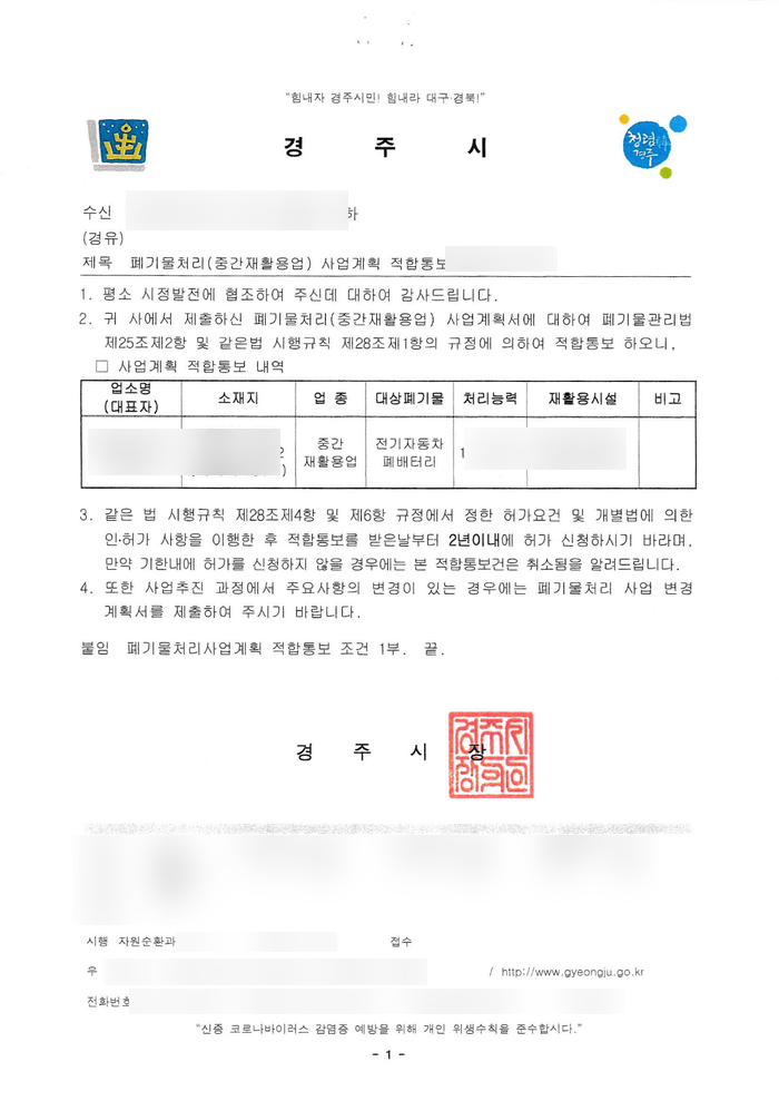 오늘 안내할 포스팅은 폐기물 처리업 중 중간재활용업, 그 중에서도 폐기물은 폐배터리에 관한 내용입니다.