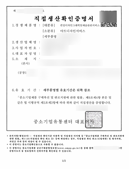 아트디자인 직접생산확인증명서 관련하여 업무가 필요하신 분들은 언제든 연락주시기 바랍니다.