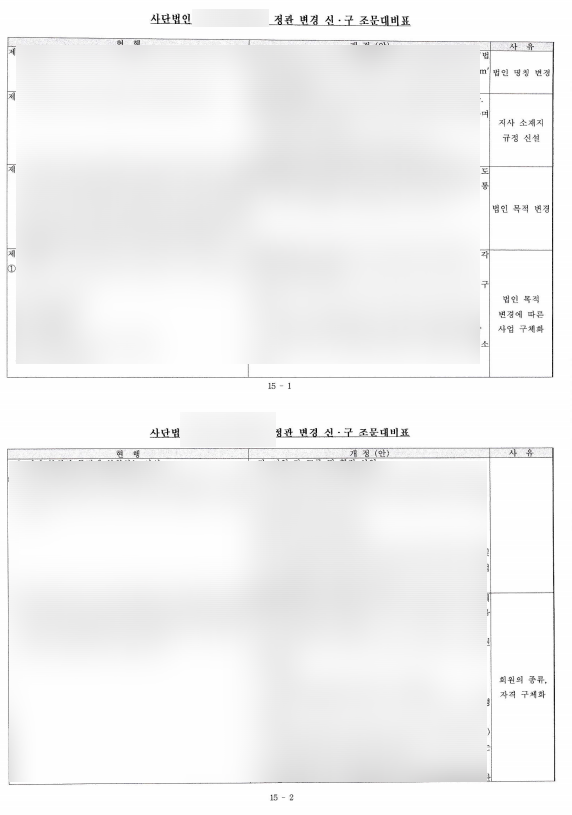 정관 변경 시 신구조문대비표를 제출합니다. 주무관은 대비표를 보고 규정에 맞게 변경이 되는지? 문제는 없는지? 등을 검토하게 됩니다. 본인 소관 부서의 업무가 아니거나, 문제가 된다면 정관 변경 허가 자체가 안 될 수 있습니다. 따라서, 사전 검토를 합니다.