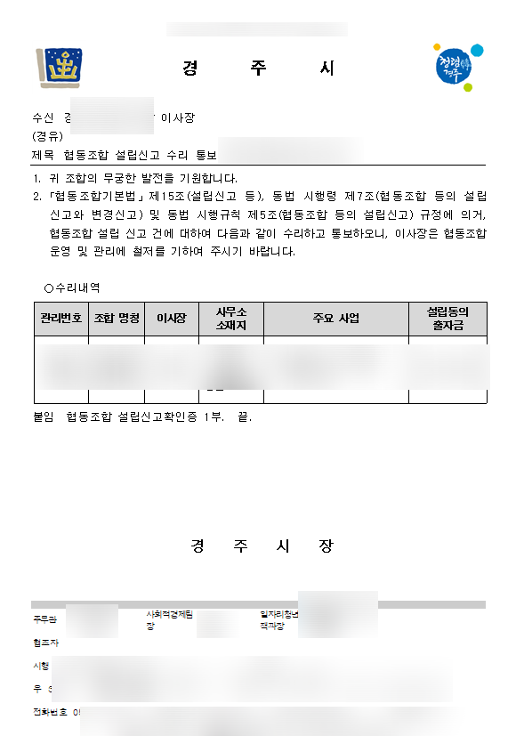 협동조합 관련하여 설립 절차와 신고 서류 등이 필요하신 경우 언제든 연락주시기 바랍니다.