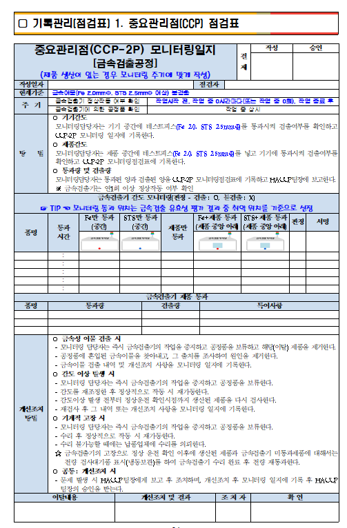다만, 해썹은 여기에 탈의실과 위생전실이 추가되고, 금속탐지기 및 살균을 위한 CCP(중요관리점)가 추가된다고 보시면 되겠습니다.