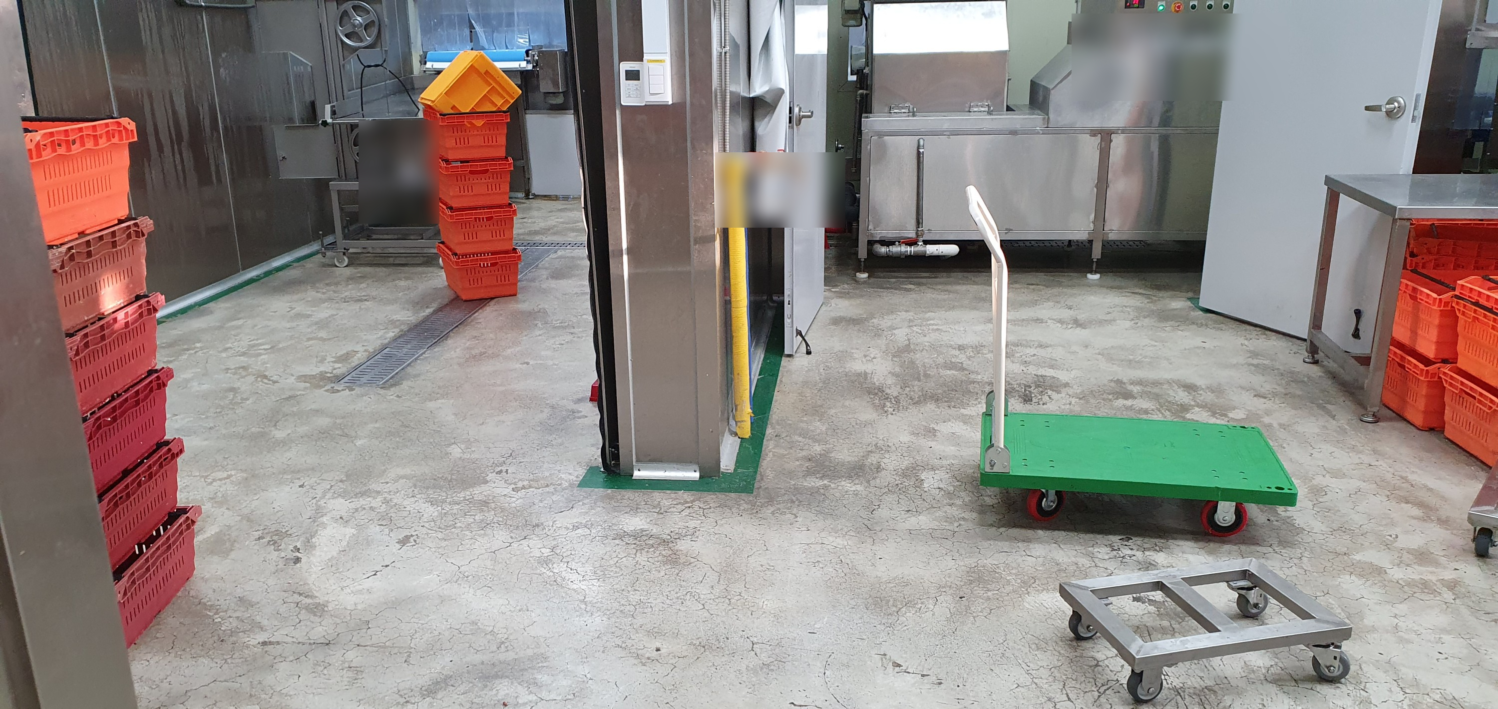 작업장은 원료 보관실, 식육 처리실, 포장실 등으로 구분이 되며, 업체의 특성에 맞게 구분할 수 있습니다. 작업장 바닥은 보통 에폭시 등으로 내수성이 좋아야 하고, 건물 내벽 1.5미터 높이까지 방수가 되게끔 합니다.