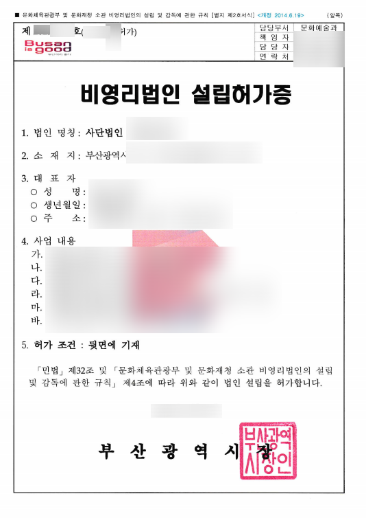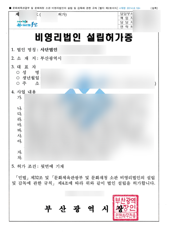 총회까지 개최가 끝났으면 서류를 제출해야 합니다. 부산지역에 설립하려는 사단법인, 재단법인은 부산광역시청에 제출하며, 사회적협동조합은 전국단위이기 때문에 설립하려는 부서(보건복지부, 문화체육관광부 등)에 제출해야 합니다.