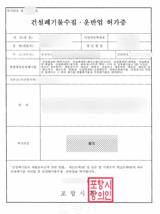[건설폐기물 수집운반업 허가]