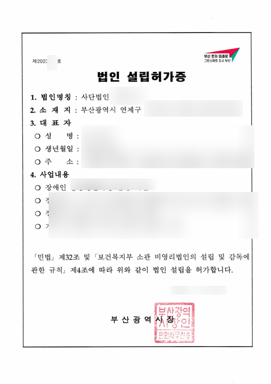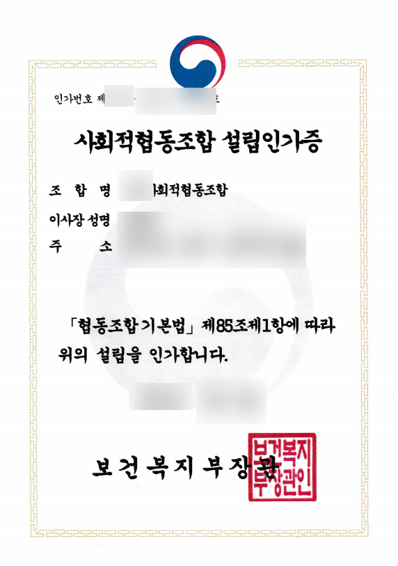 사단법인, 사회적협동조합은 법인이므로 각각 주무관청으로부터 설립 허가(사단법인), 설립 인가(사회적협동조합)를 받고, 등기 및 고유번호증 발급을 해야 합니다.