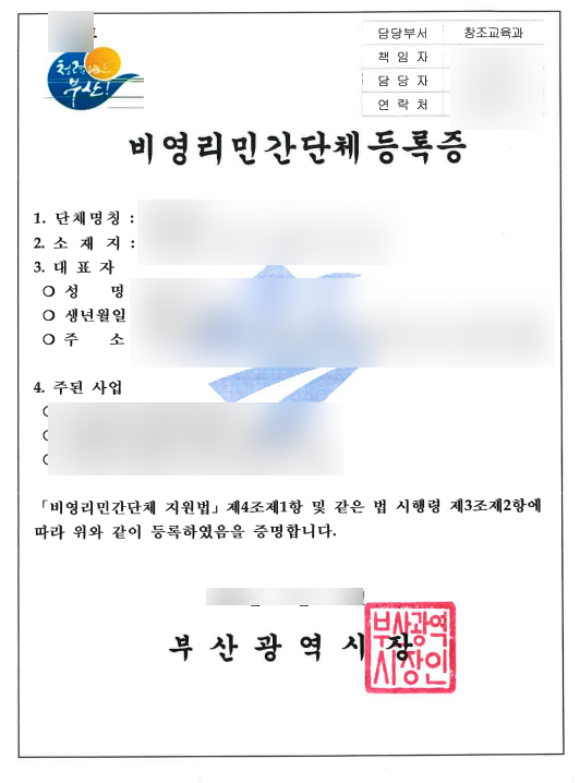 | 부산 예술, 문화단체 고유번호증 발급 서류 작성(법인으로 보는 단체 / 임의단체 등록) (0) | 2025.12.31 |