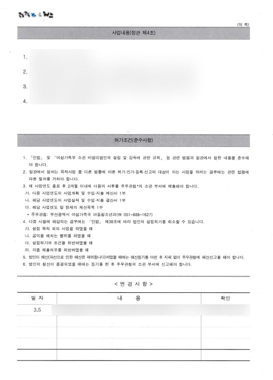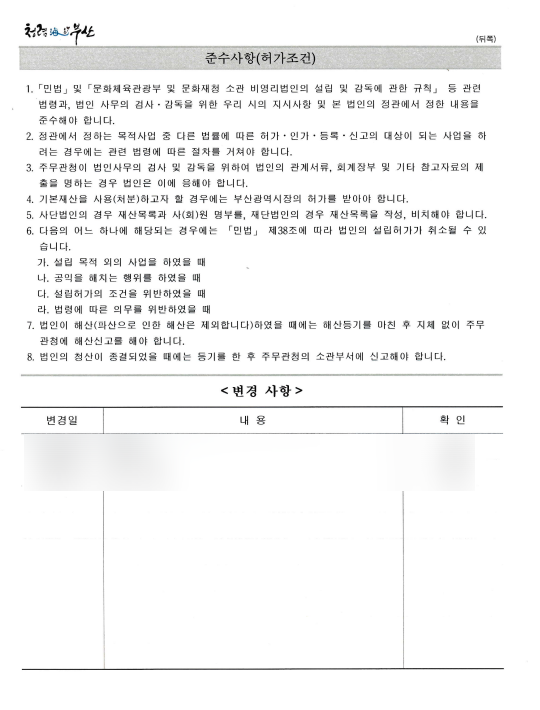 정관 변경 시 목적사업 등은 함부로 바꿀 수 없습니다.